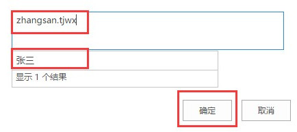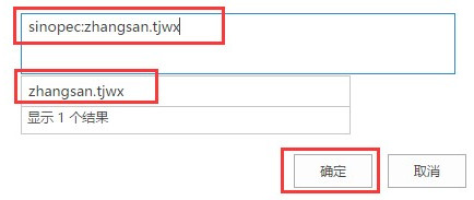 升級(jí)后,同樣是給張三授權(quán),在添加用戶時(shí)的形式:輸入 sinopec:zhangsan.tjwx ,系統(tǒng)會(huì)檢索出張三的FORM 賬號(hào),選擇點(diǎn)擊確定即可,如下圖所示: